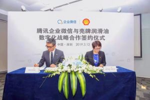 2019年3月12日,腾讯企业微信与壳牌润滑油在深圳共同签署了《数字化战略合作协议》,协议将基于壳牌与腾讯各自的优势,共同帮助包括汽车保养维修门店在内的中国汽车后市场加快数字化转型。