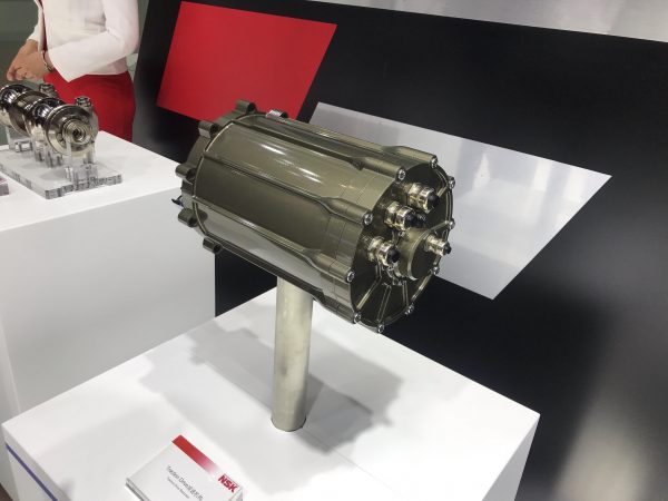 本次上海车展,NSK以“创新・超越想象”为主题,通过颠覆性的汽车总成设计理念,运用引以为豪的4大核心技术,为业界呈现了重大创新产品,例如可实现轻量化和节约空间的轮边电机、提升车辆转向性能的灵动转向模块化概念以及目前正在与蔚来汽车合作研发中的的Traction Drive减速机构。