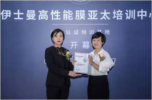 伊士曼高性能膜事业部亚太区技术总监王丽亚女士颁发广州培训基地授权牌