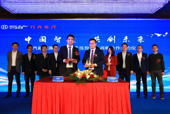2019年12月13日,北京新能源汽车股份有限公司(简称北汽新能源)与国内线控底盘供应商上海拿森汽车电子有限公司(简称上海拿森)在上海淳大万丽酒店举办战略合作签约仪式。北汽新能源研究院院长杨子发,北汽新能源总经理助理、采购部部长张凯,北汽新能源总经理助理、资本运营部部长刘晓萌,北汽新能源底盘部部长李波,北汽新能源采购部零部件开发科科长闫良杰,金浦投资执行董事刘同,经纬中国投资总监刘壮,上海拿森创始人、总经理陶喆等有关领导出席活动,上海交通大学智能网联电动汽车创新中心副教授王亚飞主持本次仪式。