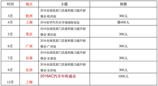 2016年度AC汽车全国活动排期表