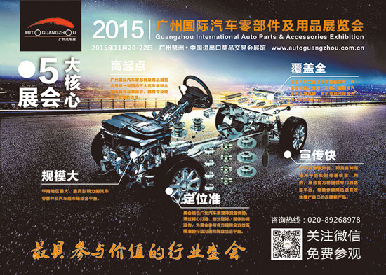 ?2015广州国际汽车零部件及用品展览会将于11月20-22日在广交会展馆盛大举办,展会题材包括汽车零部件、汽车用品、汽车维修、汽车养护、汽车影音、汽车改装等题材,覆盖汽车制造前端及后市场,为专业观众提供优质的采购平台,同时为广大车主打造满意的一站式服务体验。