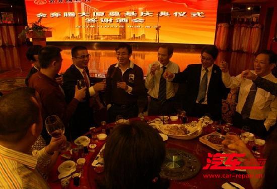 参观结束后,各位领导和嘉宾朋友们欢聚一堂,出席了广西金奔腾大厦奠基仪式答谢宴会。