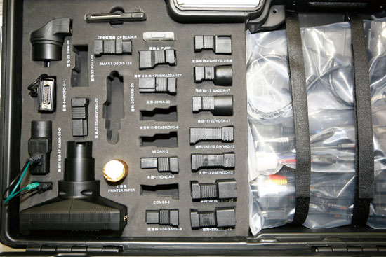 X431 GX3的主要通用配件包括诊断接头、测试主线、点烟器线、触摸笔以及CF卡和CF卡读写器等。