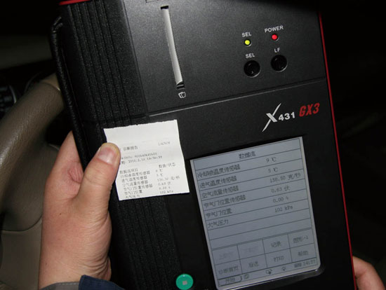 与整机一体的打印机是X431的主要卖点之一(图5),本次依然延续到了X431 GX3上。其功能和操作都与X431相同,诊断过程中的一些数据都可以随时打印。