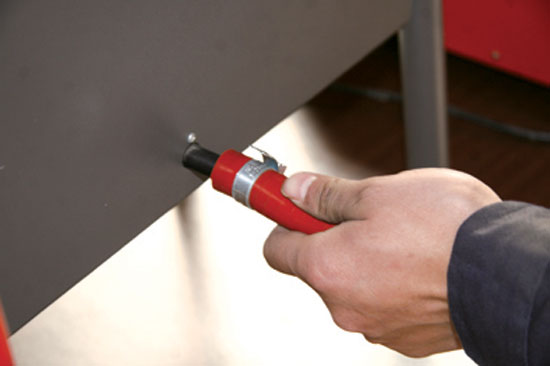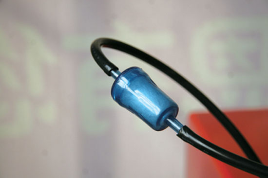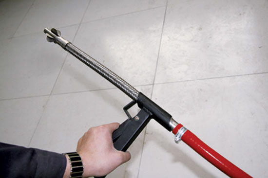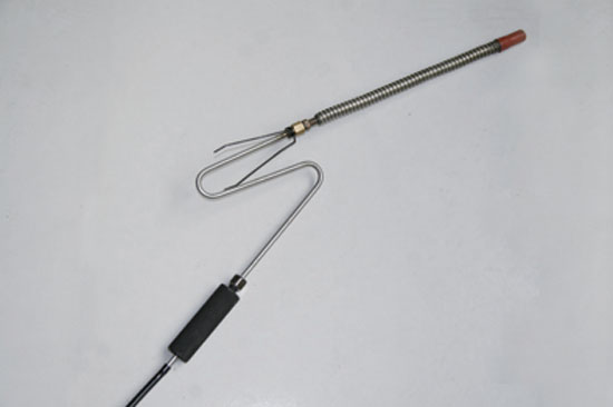 圣威汽柴两用尾气分析仪采用双取样探头,汽油车和柴油车的尾气取样各用一套。汽油车取样探头设有活动的排气管卡口装置(图9),能够保证取样过程中,取样探头根据排气管的不同而插入不同的深度,并确保探头不会滑出排气管。后部连接的输气管较细,输气管上还有一个小的过滤装置(图10)。柴油车取样探头的设计也很有特点,不但粗了许多,而且结构上像一把枪,使用时操作人员握住把手,将探头伸入排气管中(图11)。把手可以在探头杆上移动,以适应不同的探入深度。