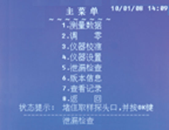 圣威汽柴两用尾气分析仪启动预热后进入尾气分析功能选择界面,除了数据测量功能外,还包括调零、仪器校准以及泄漏检查等功能。其中,调零功能和仪器校准功能都是为了保证设备的测量精度设计的,一旦系统的零点漂移过大,需要用标准气体进行校准。泄漏检查功能则是对整个尾气分析仪的取样气路进行检查,一旦发现有漏气或者阻塞的现象发生,系统会发出警告(图17)。此外,当进行柴油车尾气检测时,当出现排烟温度超出范围、取样探头温度超出范围或者风扇转速超出范围等情况时,系统会在报警信息中记录(图18)。