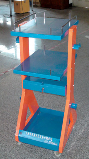 圣威汽柴两用尾气分析仪的主机虽然体积不大,但是质量不小,搬动时不太方便,因此制造商在主机的上方设计了一个提手,这样在搬运过程中比较省力。此外,有条件的维修企业还可以选配移动式支架(图20),主机和辅机均可以放置在支架上。而且支架的车轮带有固定装置。