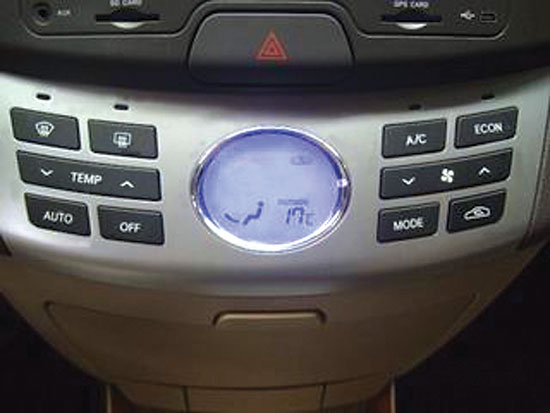 故障现象:一辆2009年产悦动1.8自动挡轿车,行驶里程2.4万 km,搭载了全新调校的α系列发动机,采用CVVT技术,装备全自动空调系统。用户反映该车开空调时,当送风模式选为面部送风时脚下也有风。但故障出现频率很低,且无规律。
