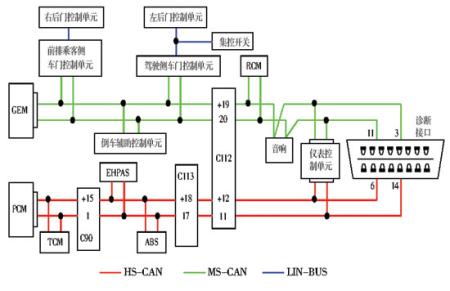 在2009年款长安福特福克斯轿车上,4个车门控制单元间采用了CAN-LIN连接,驾驶侧车门控制单元与前排乘客侧车门控制单元间采用MS-CAN连接,驾驶侧车门控制单元与左后车门控制单元间采用LIN线连接,前排乘客侧车门控制单元与右后车门控制单元间采用LIN线连接(图1)。驾驶侧车门集控制开关对右后门门锁和玻璃升降器的控制过程是:驾驶侧车门控制单元MS-CAN→前排乘客侧车门控制单元LIN→右后车门控制单元→右后门锁电机或玻璃升降器电机。随后笔者拆开右后门衬板,检查右后车门控制单元插接器,插接器完好,连接完全正常。会不会是线路问题呢?笔者接下来检查相关线路(图2)。该车4门控制单元之间采用CAN-LIN线连接,为此笔者测量了从右前门控制单元到右后车门控制单元之间的通信线的连接情况。经测量,该段线路无搭铁和短路现象。由于右后车门控制单元与前排乘客侧车门控制单元间是靠LIN线传递信号的,会不会是前排乘客侧车门控制单元损坏呢?由于LIN线间传送的是数字信号,笔者决定借助VMM示波器观察LIN线传输信号波形。由于左侧车门控制单元正常,作为参考,笔者先利用示波器观察了左侧车门控制单元传输信号的波形(图3)。之后,笔者又利用示波器观察了右侧车门控制单元间的LIN信号波形。经仔细观察对比发现,左侧的信号波形与右侧的信号波形完全不一样。由于左侧车门控制单元及线路正常,可以确定右侧车门控制单元存在问题。经分析,笔者判定前排乘客侧车门控制单元损坏。