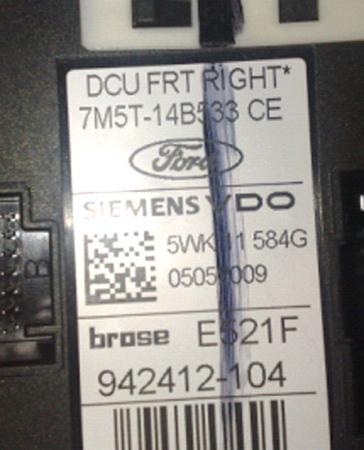 经咨询用户得知,该车最近发生了一次碰撞事故,撞到了前排乘客侧车门,之后便送到修理厂进行维修,车辆修复后,刚使用就发现了这个问题。看来该车的故障应该与这次碰撞事故有关。由于该车的碰撞事故修复工作不是在我站进行的,于是笔者跟随用户找到事故修复的相关人员,并向他们了解了情况。经询问钣金技师得知,该车因碰撞,导致前排乘客侧电动车窗玻璃升降器损坏,由于玻璃升降器与电机、控制单元一体,于是一起更换了。难道换错了控制单元?为了确定笔者的判断是否正确,与钣金技师一起找到了旧的车门控制单元。经与车上可换的车门控制单元对比发现,两个控制单元的零件号不一样(图4、图5),看来问题果然出在车门控制单元上。