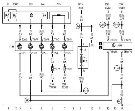 分析转向盘右侧按键E441不能控制收音机音量调节与选曲,大致有以下因素:①转向盘右侧按键E441及多功能转向盘操作单元E221没有输出调制信号;②多功能转向盘控制单元J453故障,导致不能向收音机和导航系统带操作单元的控制单元J503传输数据;③舒适系统数据总线故障;④J503有故障,无法接收数据总线传输的数据。
