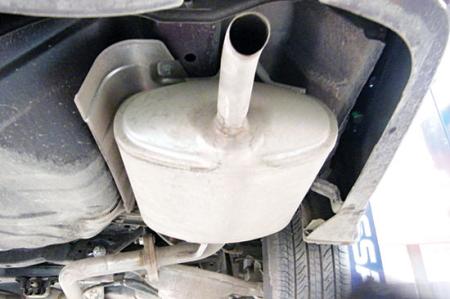 检查分析:此故障在一些专营店也遇到过。车辆在市区内长时间行驶后,由于是停停走走的低速行驶,发动机燃烧产生的水积聚在主消声器内,造成主消声器的安装位置因重力作用而下降,使橡胶支架垫失去了缓冲作用,发动机的工作振动带动消声器通过支架垫直接传到车身上,从而产生异响。