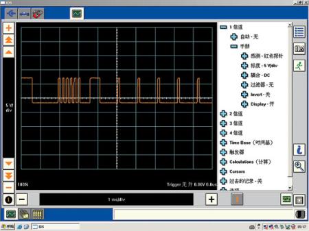 在2009年款长安福特福克斯轿车上,4个车门控制单元间采用了CAN-LIN连接,驾驶侧车门控制单元与前排乘客侧车门控制单元间采用MS-CAN连接,驾驶侧车门控制单元与左后车门控制单元间采用LIN线连接,前排乘客侧车门控制单元与右后车门控制单元间采用LIN线连接(图1)。驾驶侧车门集控制开关对右后门门锁和玻璃升降器的控制过程是:驾驶侧车门控制单元MS-CAN→前排乘客侧车门控制单元LIN→右后车门控制单元→右后门锁电机或玻璃升降器电机。随后笔者拆开右后门衬板,检查右后车门控制单元插接器,插接器完好,连接完全正常。会不会是线路问题呢?笔者接下来检查相关线路(图2)。该车4门控制单元之间采用CAN-LIN线连接,为此笔者测量了从右前门控制单元到右后车门控制单元之间的通信线的连接情况。经测量,该段线路无搭铁和短路现象。由于右后车门控制单元与前排乘客侧车门控制单元间是靠LIN线传递信号的,会不会是前排乘客侧车门控制单元损呢?由于LIN线间传送的是数字信号,笔者决定借助VMM示波器观察LIN线传输信号波形。由于左侧车门控制单元正常,作为参考,笔者先利用示波器观察了左侧车门控制单元传输信号的波形(图3)。之后,笔者又利用示波器观察了右侧车门控制单元间的LIN信号波形。经仔细观察对比发现,左侧的信号波形与右侧的信号波形完全不一样。由于左侧车门控制单元及线路正常,可以确定右侧车门控制单元存在问题。经分析,笔者判定前排乘客侧车门控制单元损坏。